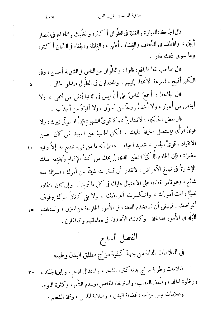 قال الجاحظ: الغباوة والغفلة في الطوال أكثر، والخبث والخداع في القصار أبين، واللطف في النحاف والقضاف أظهر، والغلظة والجفاء في السمان أكثر، وما سوى ذلك نادر.