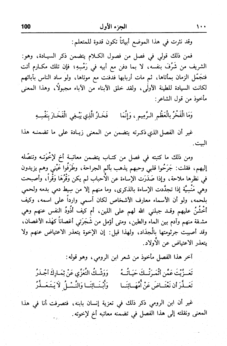 غير أن ابن الرومي ذكر ذلك في تعزية إنسان بابنه، فتصرفت أنا في هذا المعنى ونقلته إلى هذا الفصل في تضمنه معاتبه أخ لإخوته.
