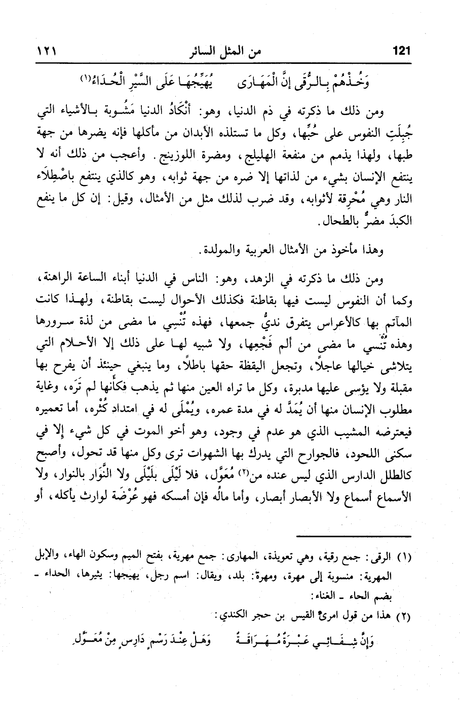 وهذا مأخوذ من الأمثال العربية والمولدة.