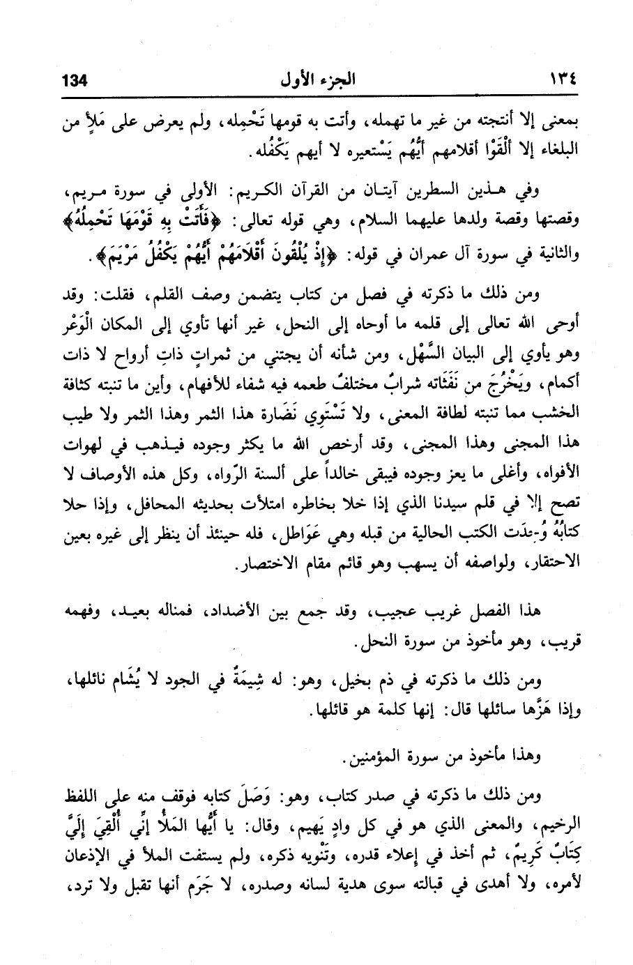 هذا الفصل غريب عجيب، وقد جمع بين الأضداد، فمناله بعيد، وفهمه قريب، وهو مأخوذ من سورة النحل.