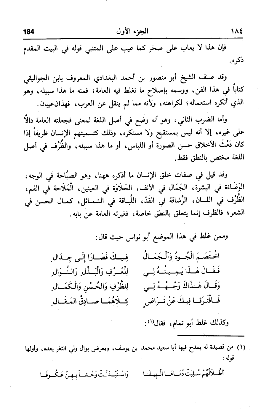 وقد صنف الشيخ أبو منصور بن أحمد البغدادي المعروف بابن الجواليقي كتابا في هذا الفن، ووسمه بإصلاح ما تغلط فيه العامة؛ فمنه ما هذا سبيله، وهو الذي أنكره استعماله؛ لكراهته، ولأنه مما لم ينقل عن العرب، فهذان عيبان.