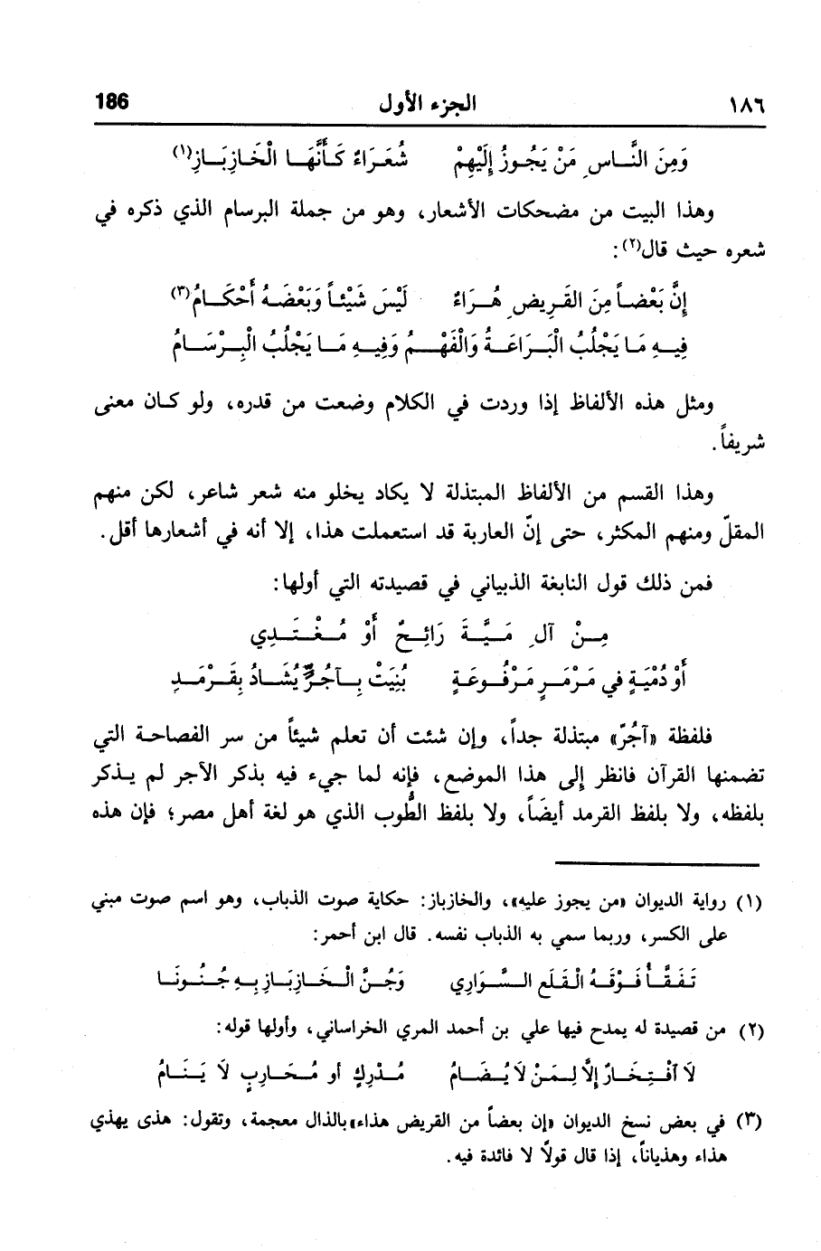 وهذا القسم من الألفاظ المبتذلة لا يكاد يخلو منه شعر شاعر، لكن منهم المقلّ ومنهم المكثر، حتى إنّ العاربة قد استعملت هذا، إلا أنه في أشعارها أقل.