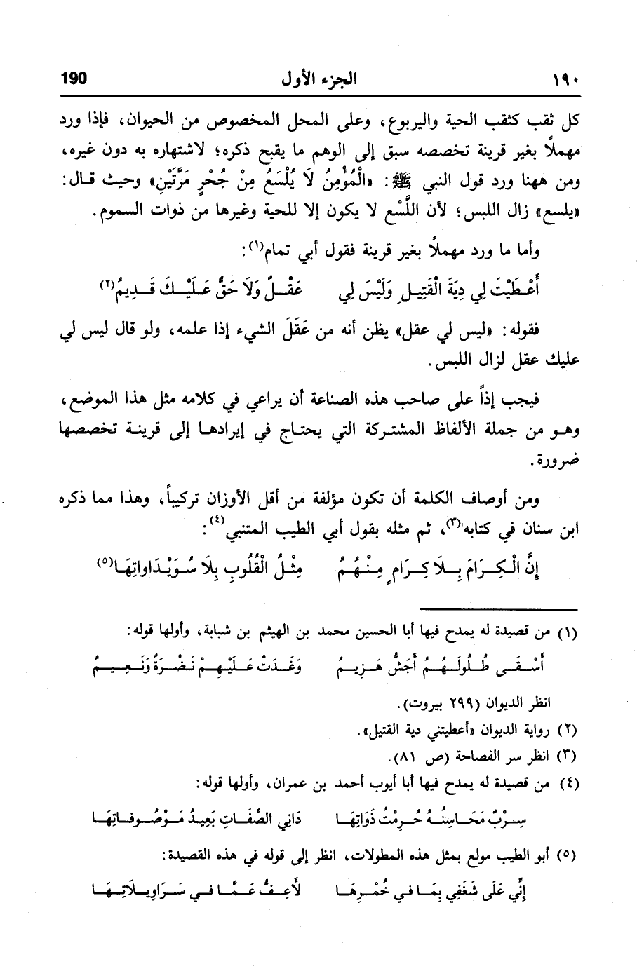 فيجب إذا على صاحب هذه الصناعة أن يراعي في كلامه مثل هذا الموضع، وهو من جملة الألفاظ المشتركة التي يحتاج في إيرادها إلى قرينة تخصصها ضرورة.