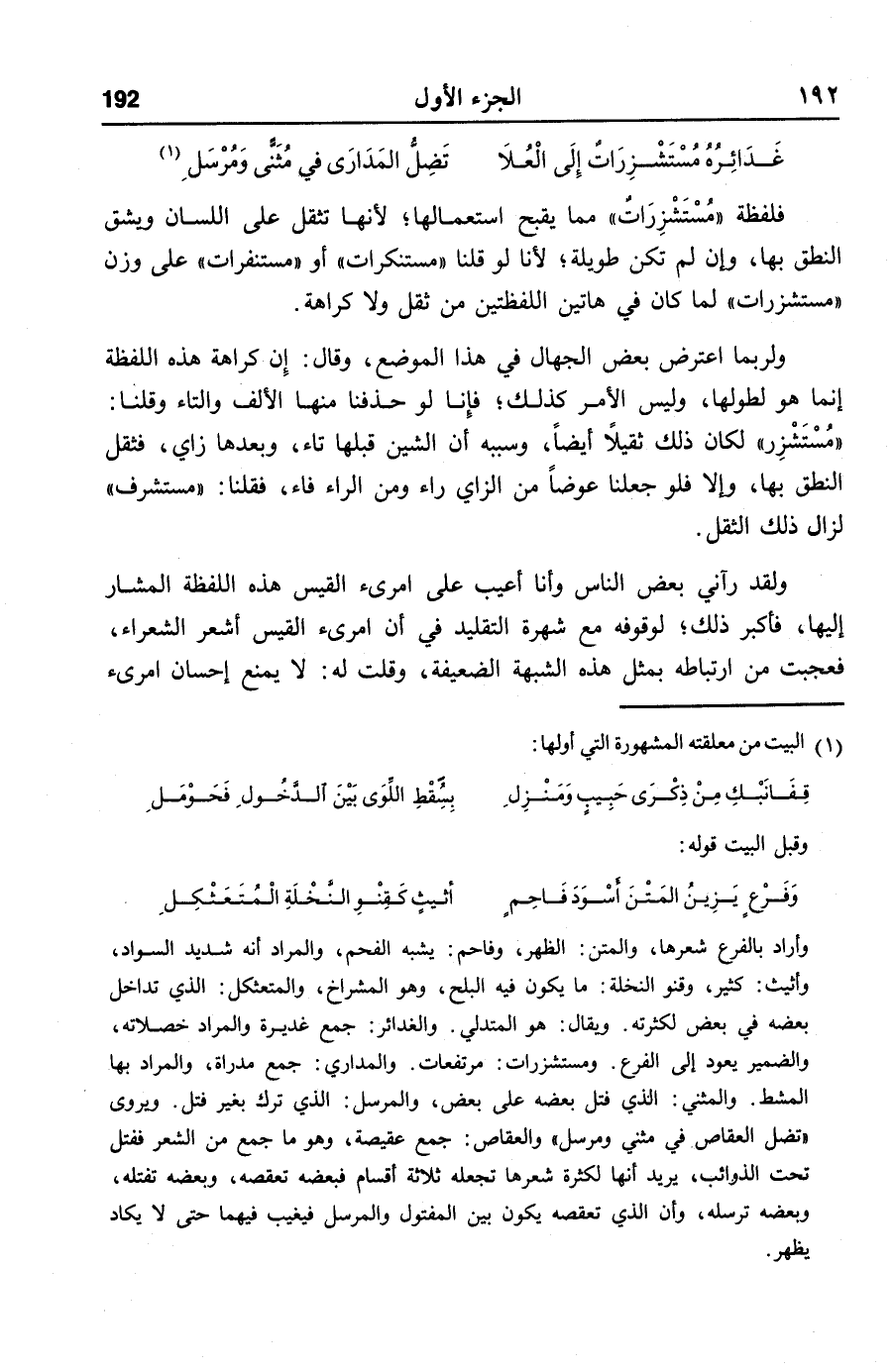 ولقد رآني بعض الناس وأنا أعيب على امرئ القيس هذه اللفظة المشار إليها، فأكبر ذلك؛ لوقوفه مع شهرة التقليد في أن امرئ القيس أشعر الشعراء، فعجبت من ارتباطه بمثل هذه الشبهة الضعيفة، وقلت له: لا يمنع إحسان امرئ