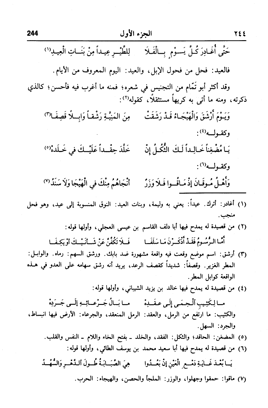حتّى أغادر كلّ يوم بالفلا ... للطّير عيدا من بنات العيد «1»
