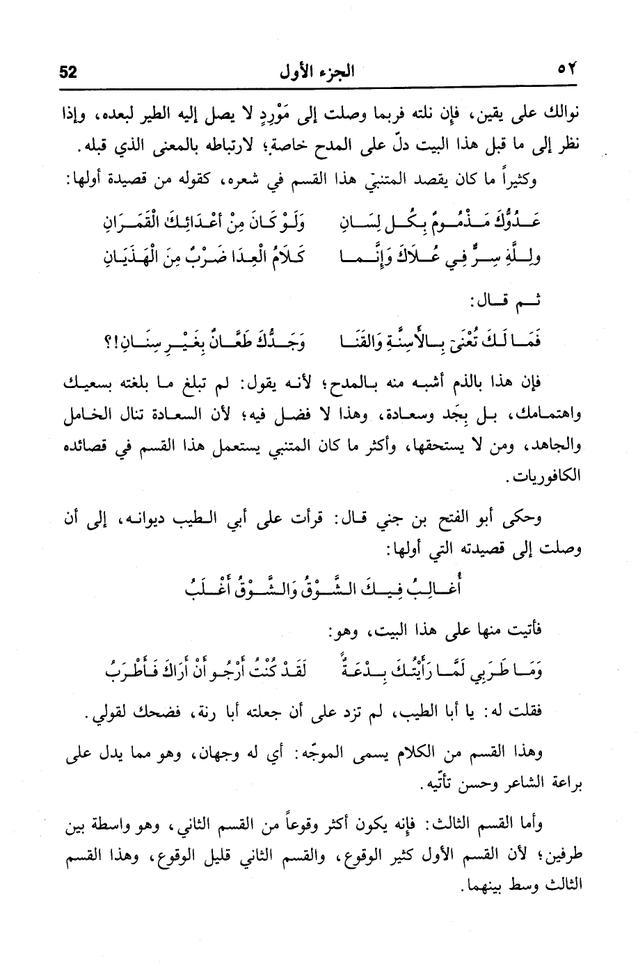 وكثيرا ما كان يقصد المتنبي هذا القسم في شعره، كقوله من قصيدة أولها: