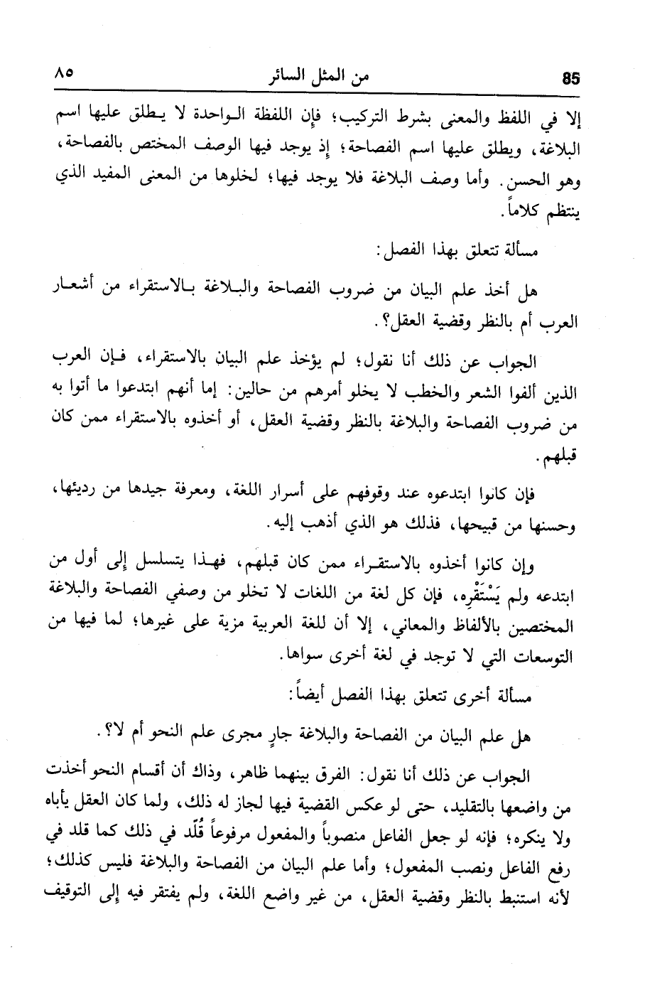 هل أخذ علم البيان من ضروب الفصاحة والبلاغة بالاستقراء من أشعار العرب أم بالنظر وقضية العقل؟.