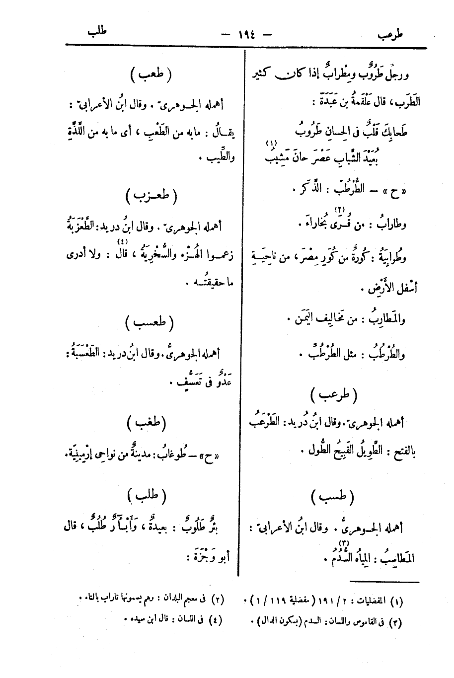 ورجلٌ طَرُوبٌ ومِطْرابٌ: إذا كان كثير الطَرَب، قال عَلْقَمةُ بن عَبَدَةَ: