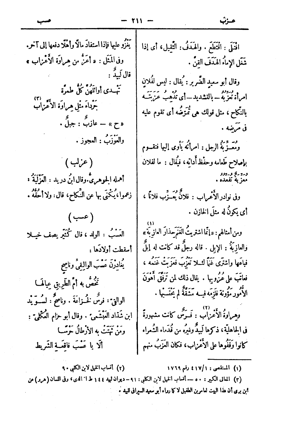 ومُعَزِّبَةُ الرجل: امرأتُه يَأوى إليها فتقوم بإصلاح طَعامه وحفْظ أَداتِه، فيُقال: ما لفلان مُعَزِّبَةٌ تُقَعِّدُهُ.