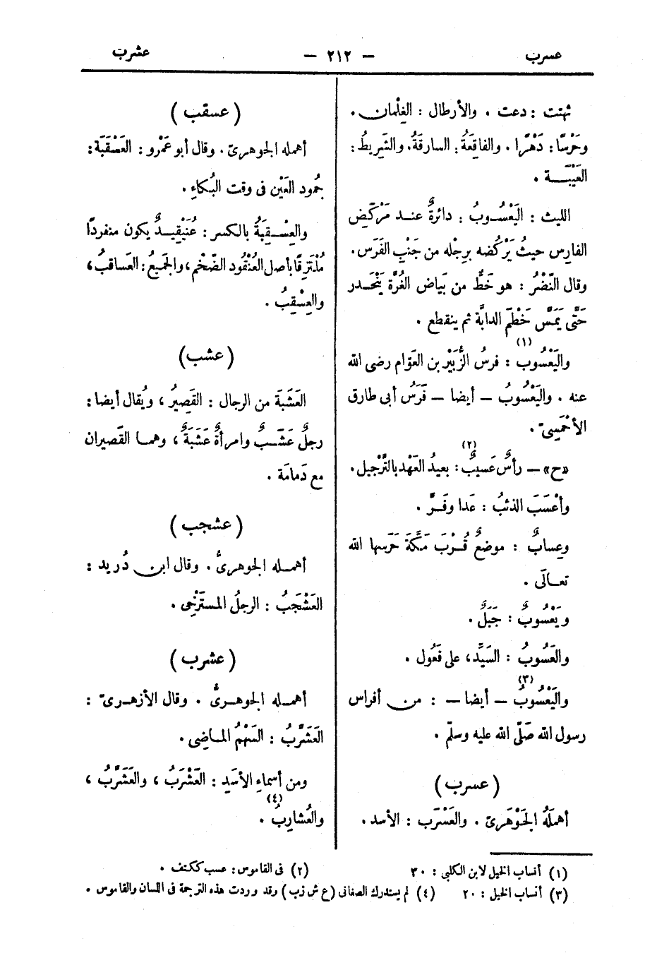 ومن أسماءِ الأسَدِ: العَشْرَبُ، والعَشَرَّبُ، والعُشارِبُ.