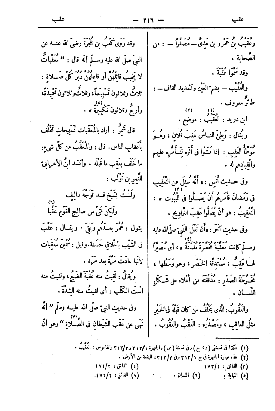 يقول: عُمِّرَ بعدَهُم وبَقِيَ. ويقال: عَقَّبَ في الشَيْب بأخْلاقٍ حَسَنة. وقيل: سُمّينَ مُعَقِّبات لأنّها عادَتْ مَرَّةً بعد مَرّة.
