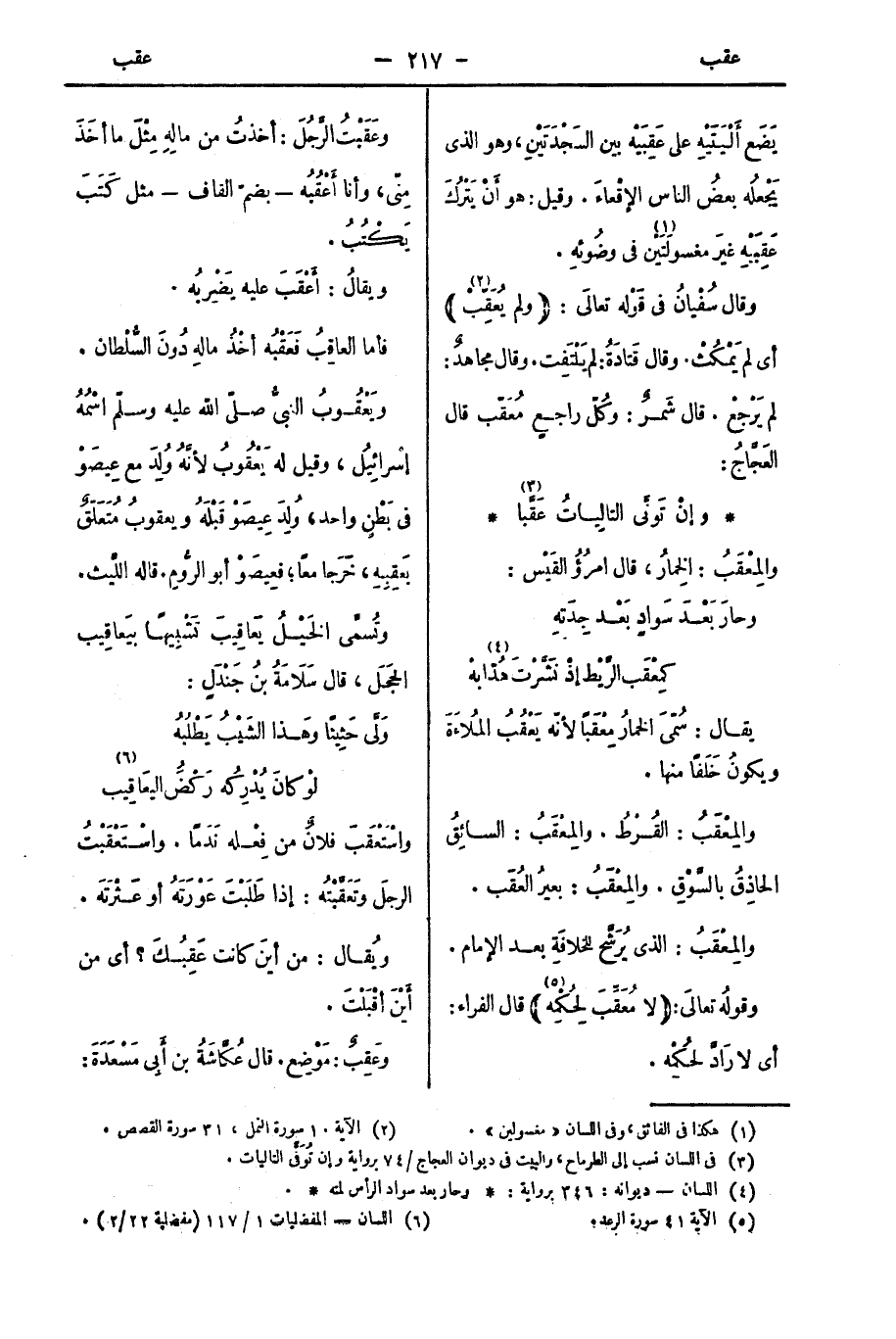 وقال سُفْيانُ في قَوْله تعالى (ولم يُعَقِّبْ): أي لم يَمْكُثْ. وقال قَتادَةُ: لم يَلْتَفِت. وقال مجاهدٌ: لم يَرْجعْ. قال شَمرٌ: وكُلّ راجعٍ مُعَقّب، قال العَجَّاجُ: