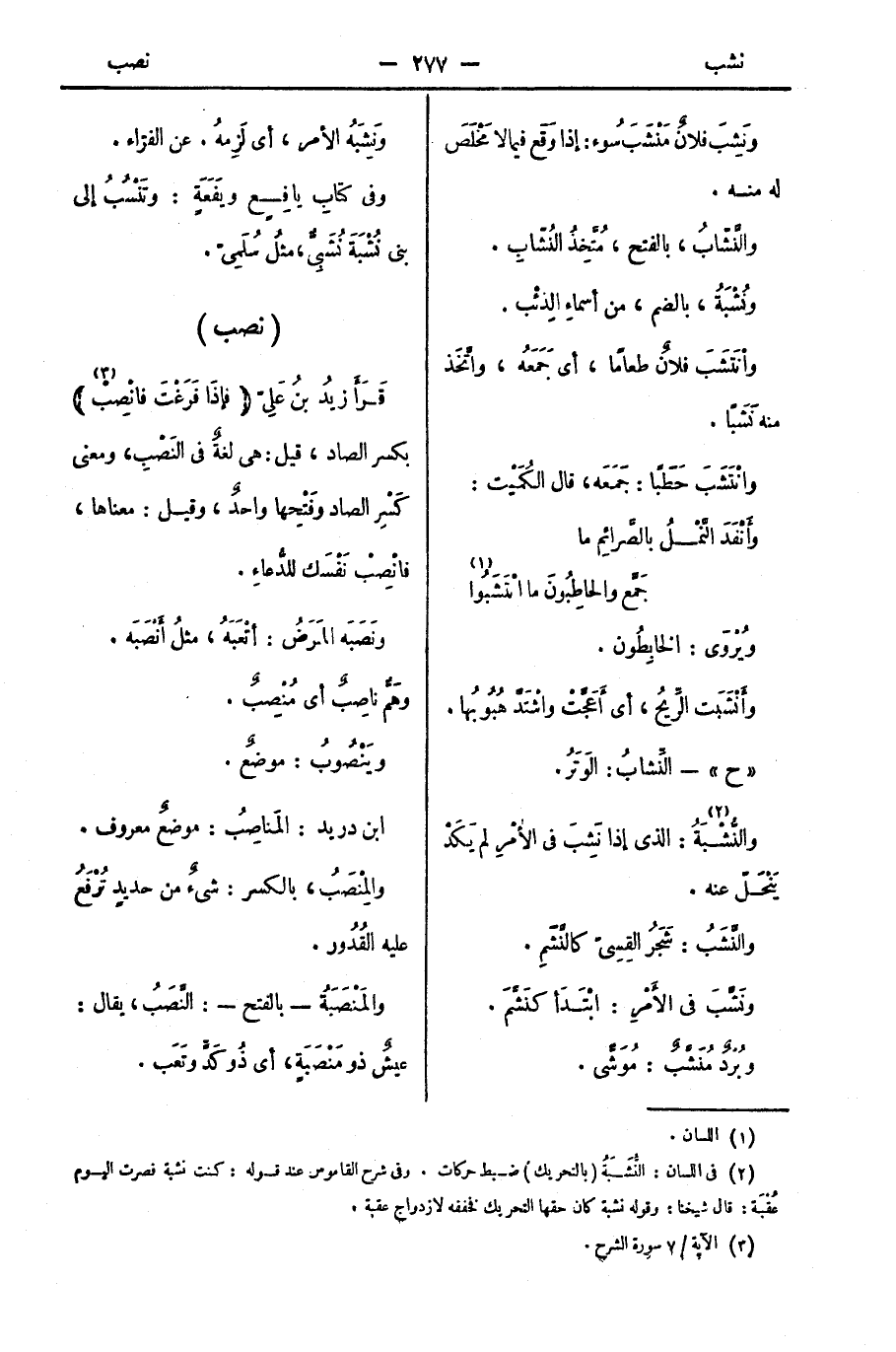 وفي كتابِ يافِعٍ ويَفَعَةٍ: وتَنْسُبُ إلى بني نُشْبَةَ نُشَبِيٌّ، مثلُ سُلَمِيّ.