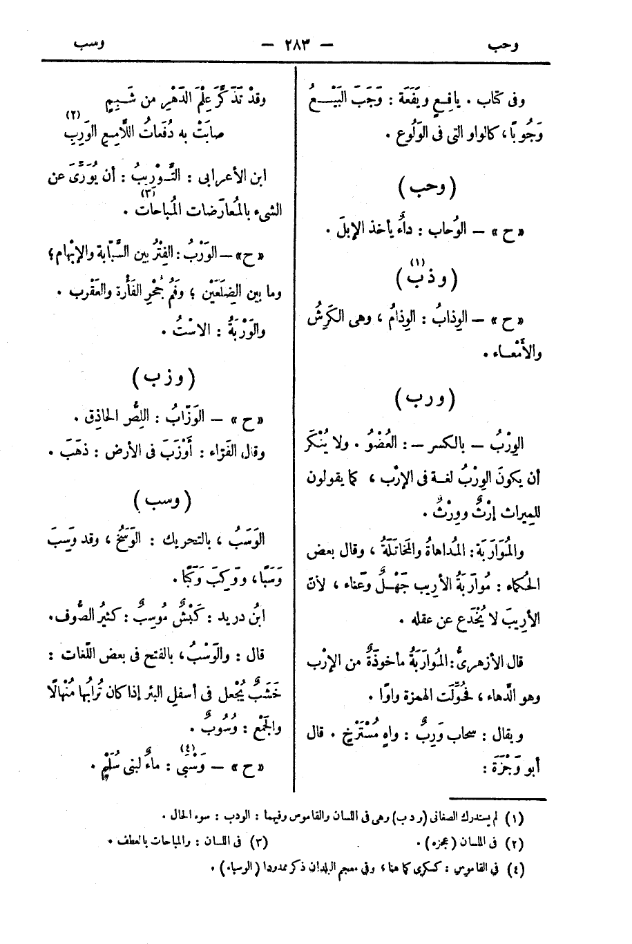" ح " - الوِذابُ: الوِذامُ، وهي الكَرِشُ والأَمْعاء.