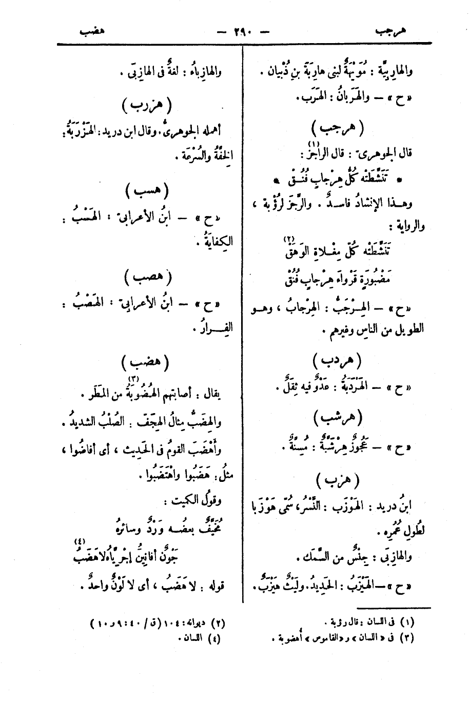" ح " - الهِرْجَبُّ: الهِرْجابُ، وهو الطويل من الناسِ وغيرهم.