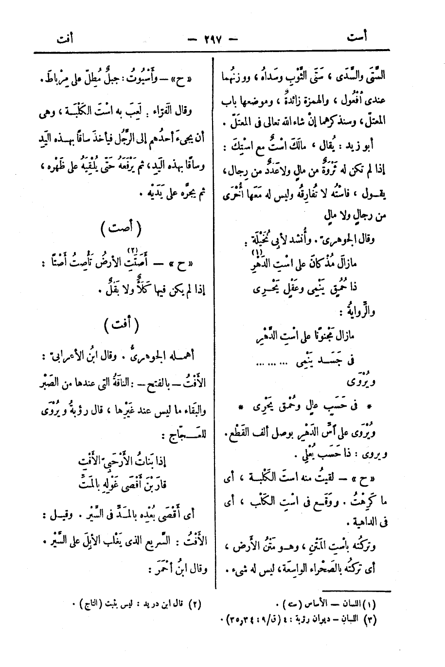 " ح " - أَصَتَتِ الأرضُ تَأْصِتُ أَصْتًا: إذا لم يكن فيها كَلَأٌ ولا بَقْلٌ.