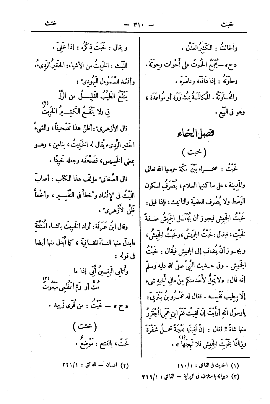 قال الصَّغانيّ مؤلّف هذا الكتاب: أصابَ اللّيْثُ في الإنْشاد وأخطأَ في التَّفْسِير، وأخْطأَ ظَنُّ الأَزْهريّ.