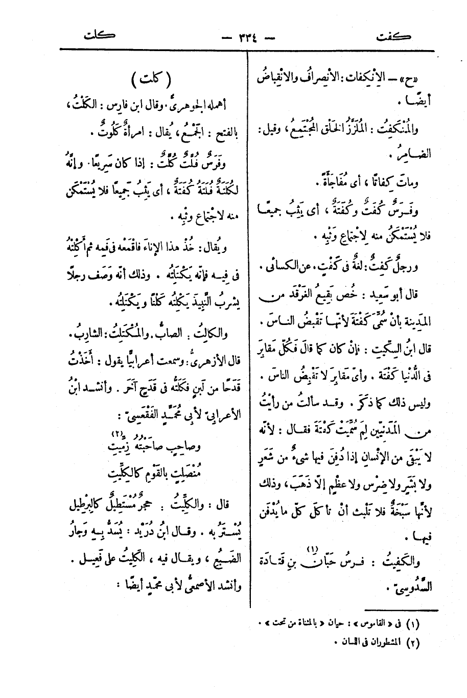 " ح " - الانْكِفات: الانْصِرافُ والانْقِباضُ أيضًا.