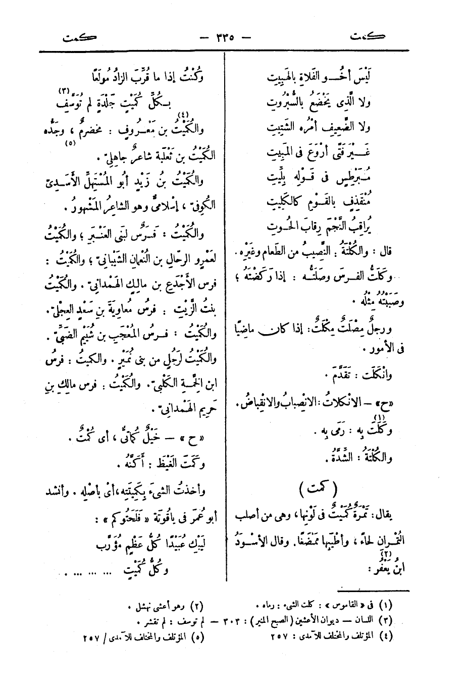 والكُمَيْتُ: فَرَسٌ لبَني العَنْبَرِ؛ والكُمَيْتُ لعَمْرٍو الرحّالِ بن النُعْمانِ الشَيْبانِيّ؛ والكُمَيْتُ: فرس الأَجْدَعِ بن مالِكٍ الهَمْدانِيّ. والكُمَيْتُ بنتُ الزَّيْتِ: فرسُ مُعاوِيَةَ بنِ سَعْدٍ العِجْليّ. والكُمَيْتُ: فرسُ المُعْجَبِ بن شُيَيْم الضَبِّيّ. والكُمَيْتُ لرَجُلٍ من بني نُمَيْرٍ. والكميتُ: فرسُ ابن الخِمَّةِ الكَلْبيّ. والكُمَيْتُ: فرس مالِكِ بن حَرِيم الهَمْدانِيّ.
