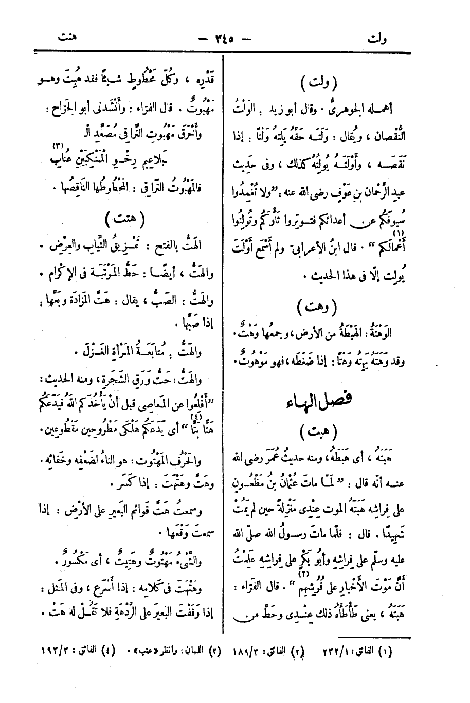 وهَتْهَتَ في كَلامِه: إذا أَسْرَع، وفي المَثل: إذا وَقَفْتَ البعيرَ على الرَّدْهَةِ فلا تَقُلْ له هَتْ.