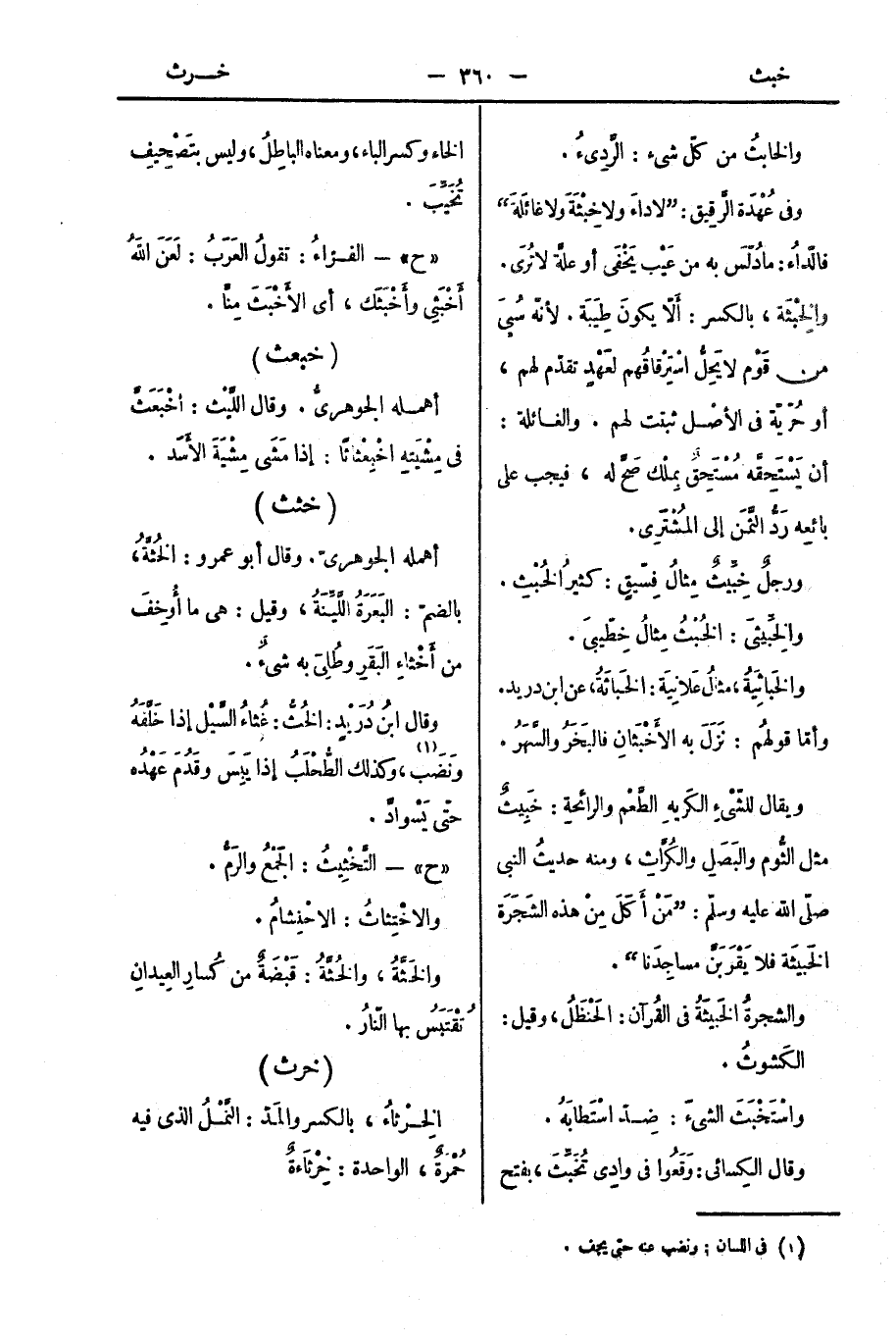 وقال الكِسائي: وَقَعُوا في وادِي تُخَبِّثَ، بفتح الخاء وكسر الباء، ومعناه الباطِلُ، وليس بتَصْحِيفِ تُخَيِّبَ.