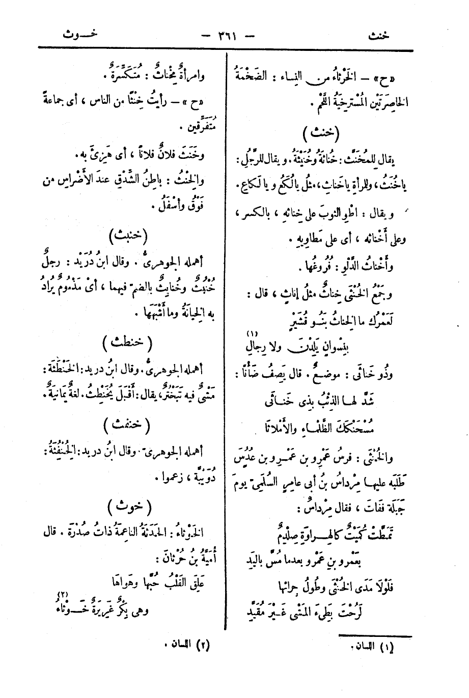 " ح " - رأيتُ خِنْثًا من الناس، أي جماعةً مُتَفَرِّقين.
