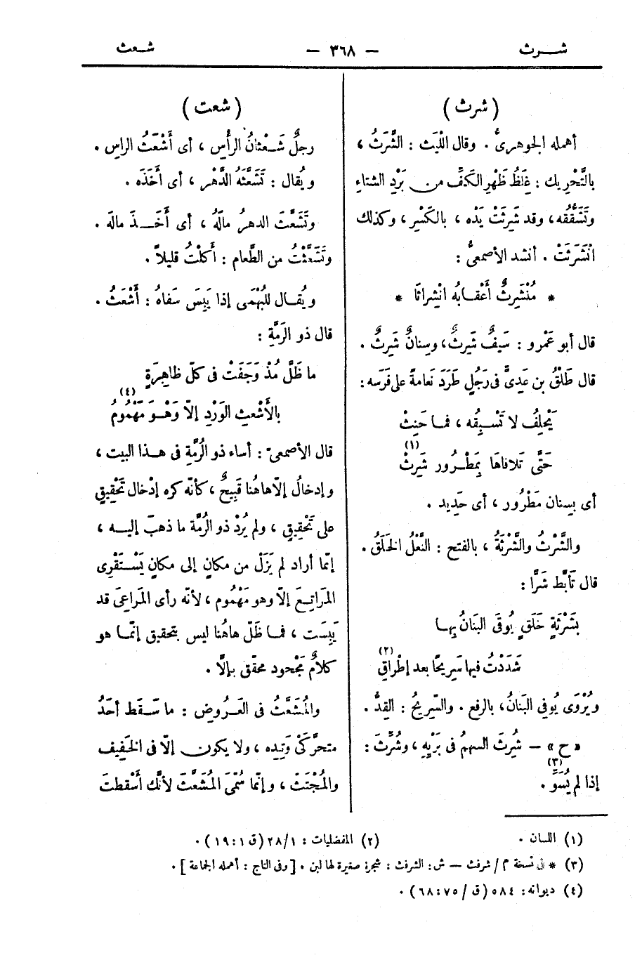 " ح " - شُرِثَ السهمُ في بَرْيِهِ، وشُرِّثَ: إذا لم يُسَوَّ.