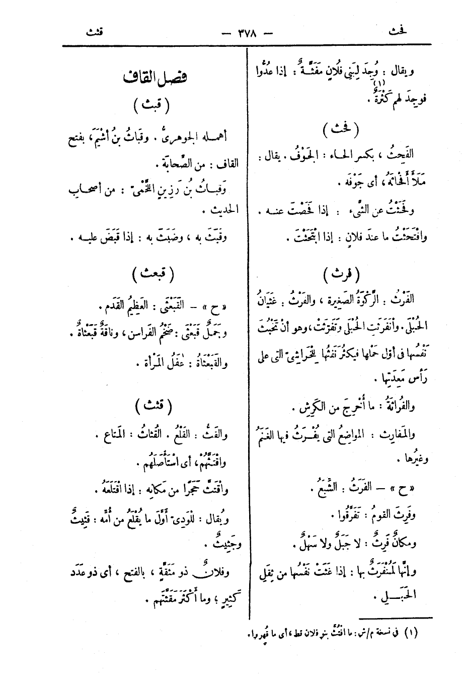 ويقال: وُجِدَ لِبَنِي فُلانٍ مَفَثَّةٌ: إذا عُدُّوا فوجِدَ لهم كَثْرَةٌ.