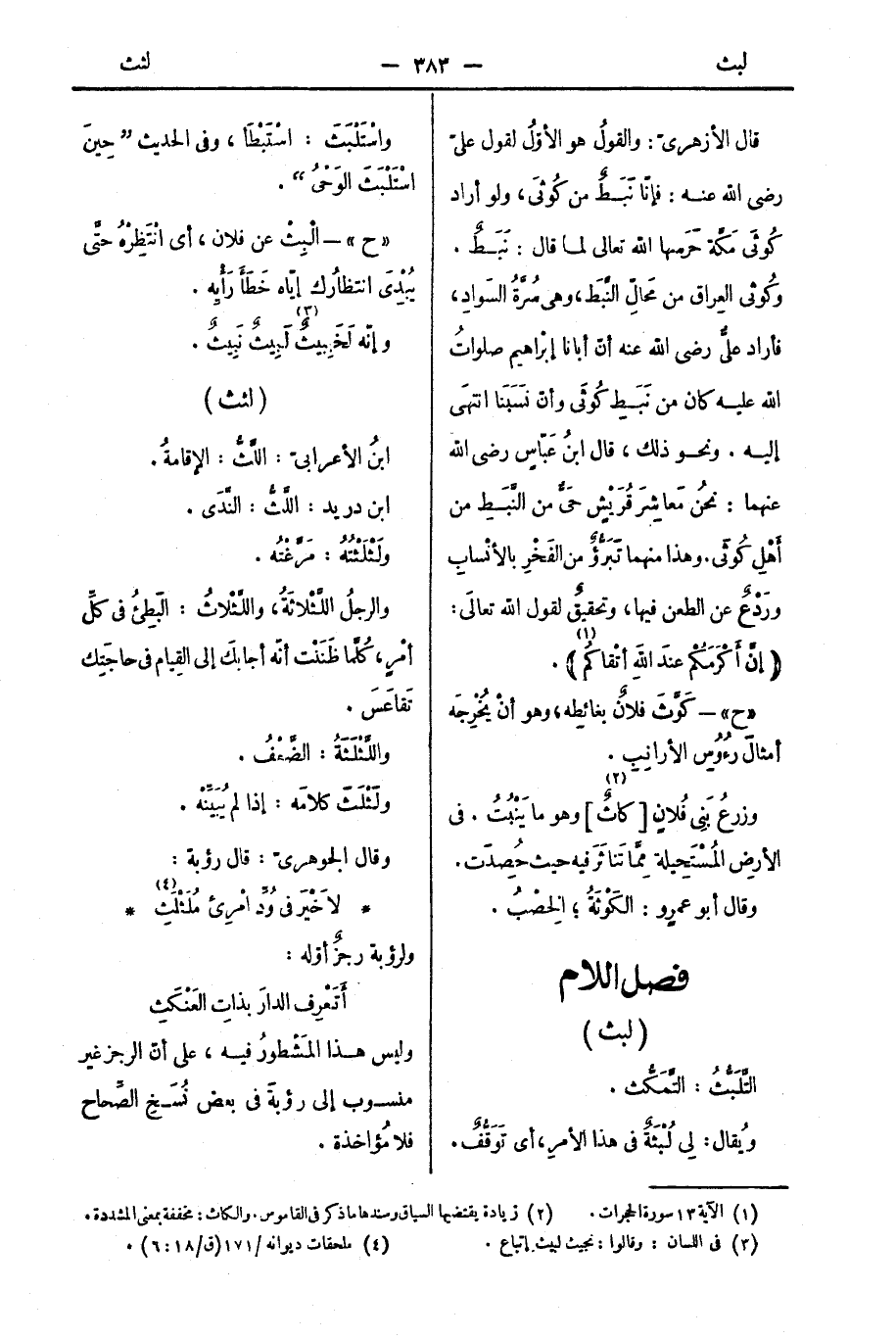 ابنُ الأعرابيّ: اللَّثُّ: الإقامةُ.