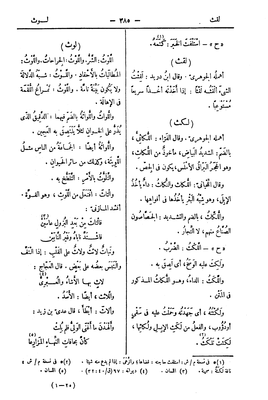 اللَّوْثُ: الشَّرُّ. واللَّوْثُ: الجِراحاتُ. واللَّوْثُ: المُطالَباتُ بالأَحْقادِ. واللَّوْثُ: شبْهُ الدَّلالَة ولا يَكُون بَيِّنَةً تامَّة. واللَّوْثُ: تَمْراغُ اللُّقْمَة في الإهالَة.
