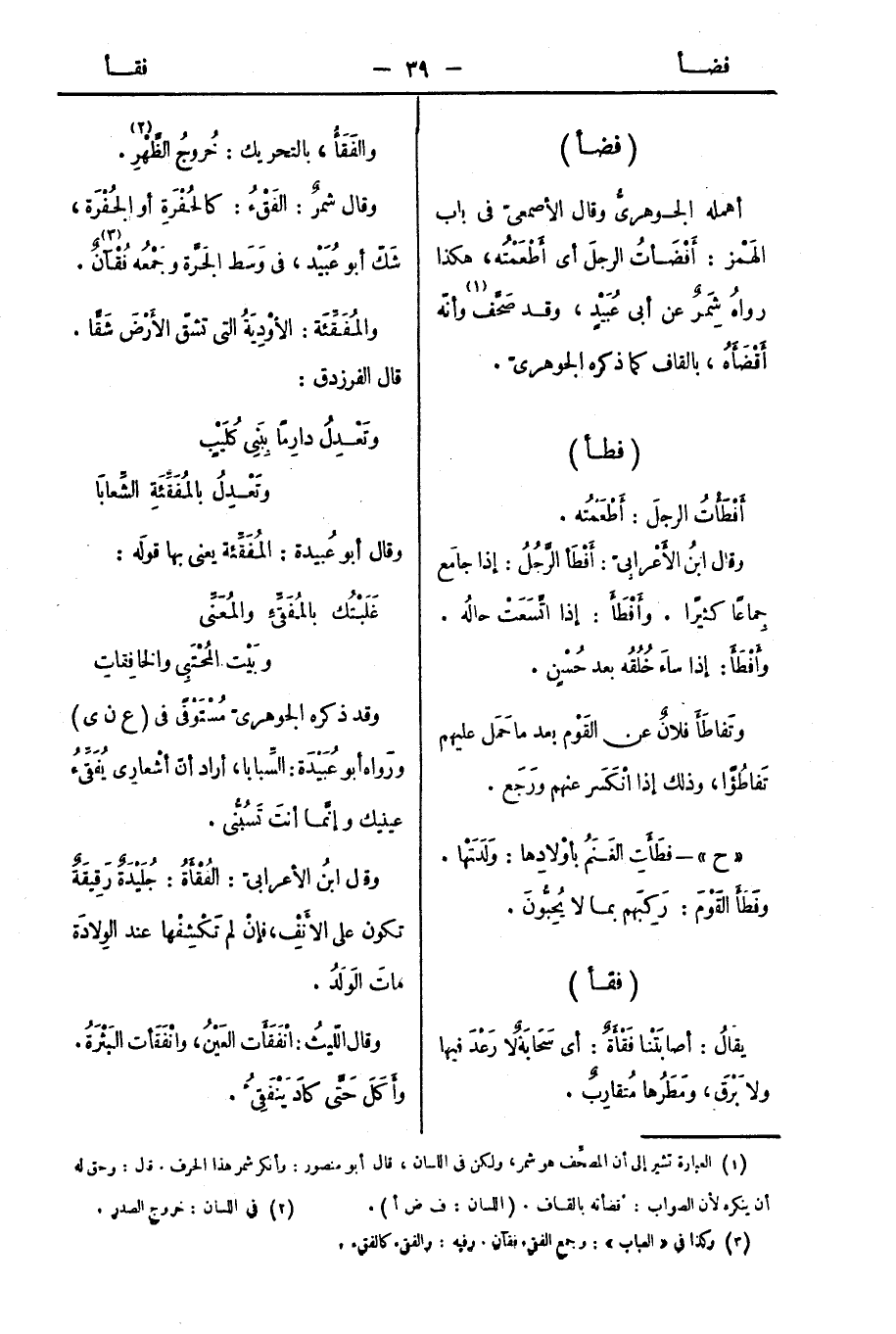 أهمله الجوهريُّ. وقال الأصمعيّ في باب الهَمْز: أَفْضَأتُ الرجلَ، أي أَطْعَمْتُه، هكذا رواهُ شَمِرٌ عن أبي عُبَيْدٍ، وقد صَحَّف وأنّه أَقْضَأَهُ، بالقاف كما ذكره الجوهريّ.