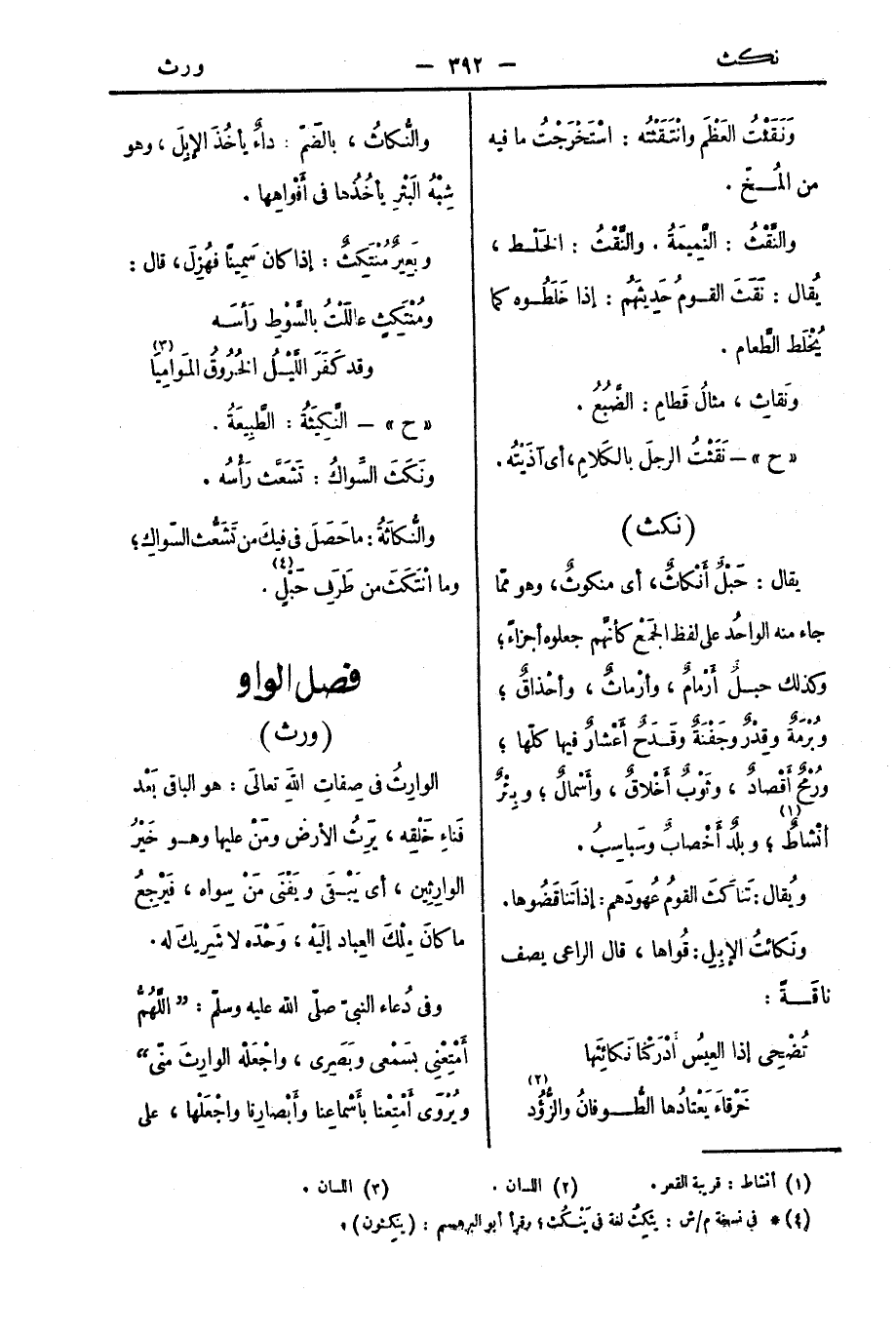 " ح " - النَّكِيثَةُ: الطَّبِيعَةُ.