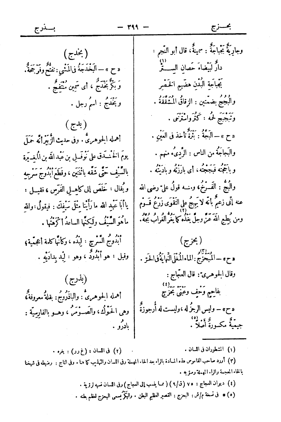 أهمله الجوهريُّ. والباذَرُوجُ: بقلةٌ معروفةٌ، وهي الحَوْكُ، والصَوْمَرُ، وهو بالفارِسِيّة: بادرُو.