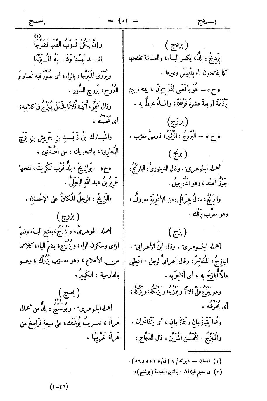 ويُرْوَى: المُبَرَّجا، بالراء، أي صُوِّرَ فيه تَصاويرُ البُرُوج، بُروجِ السُّور.
