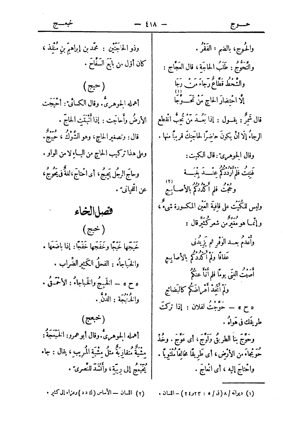" ح " - حَوَّجْتُ لفلان: إذا تركتَ طريقَك في هَواهُ.