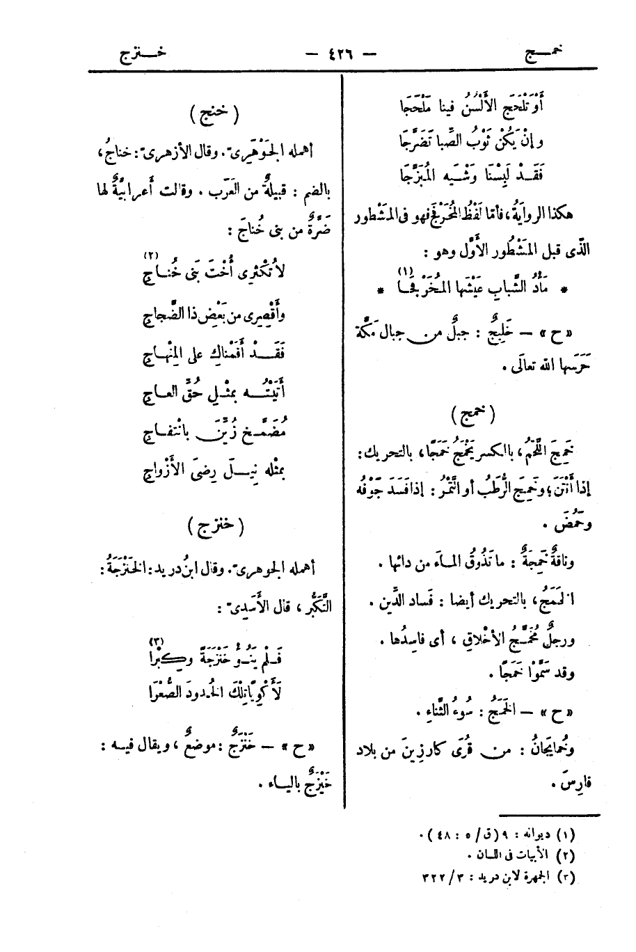 " ح " - خَنْزَجٌ: موضعٌ، ويقال فيه: خَيْزَجٌ بالياء.
