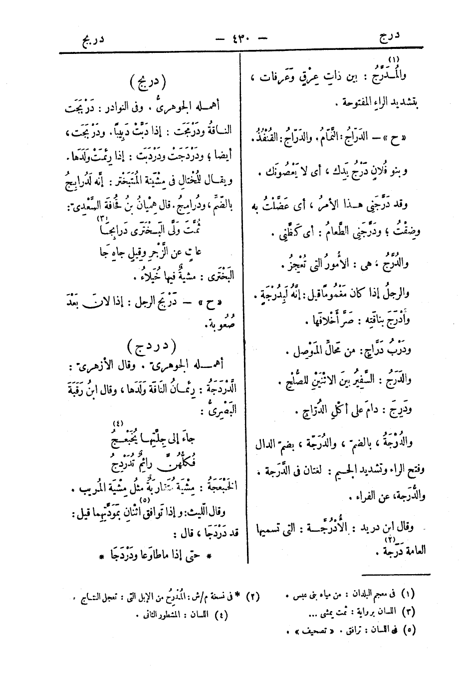والدُرَّجُ: هي الأُمورُ التي تُعْجِزُ.