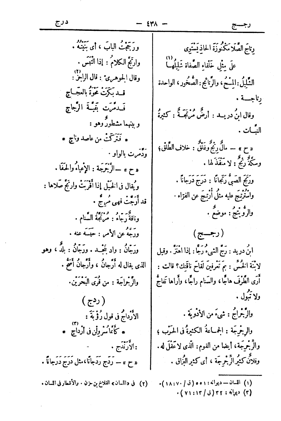 " ح " - رَدَج رَدَجانًا، مثل دَرَجَ دَرَجانًا.
