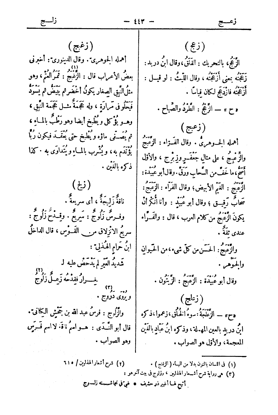 وفرسٌ زَلُوجٌ: سَرِيعٌ. وقِدْحٌ زَلُوجٌ: سريعُ الانْزِلاق من القَوْسِ، قال الداخلُ بنُ حَرامٍ الهُذلِيّ: