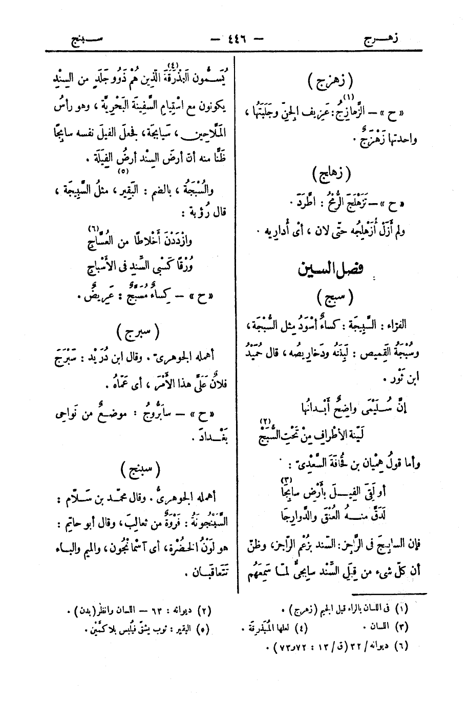 فإن السابِجَ في الرَّجزِ: السّند بزُعْم الرّاجز، وظنّ أن كلّ شيء من قِبَلِ السِّنْد سابِجيٌّ لمّا سَمِعَهُم يُسَمُّون البَذْرَقَةَ الّذِين هُمْ ذَوُو جَلَدٍ من السِنْدِ يكونون مع اسْتِيامِ السَّفِينَة البَحْرِيَّة، وهو رأسُ المَلَّاحِين: سَيابجَة، فجعلَ الفيلَ نفسه سابِجًا ظَنًّا منه أنّ أرضَ السِنْد أرضُ الفِيَلَة.