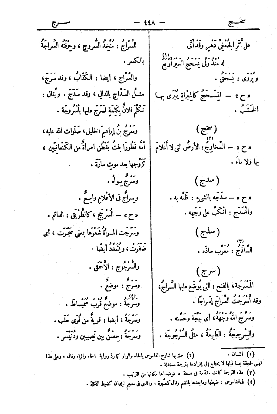 المَسْرَجَة، بالفتح: التي يُوضَع عليها السِّراجُ، وقد أَسْرَجْتُ السِّراجَ إسْراجًا.