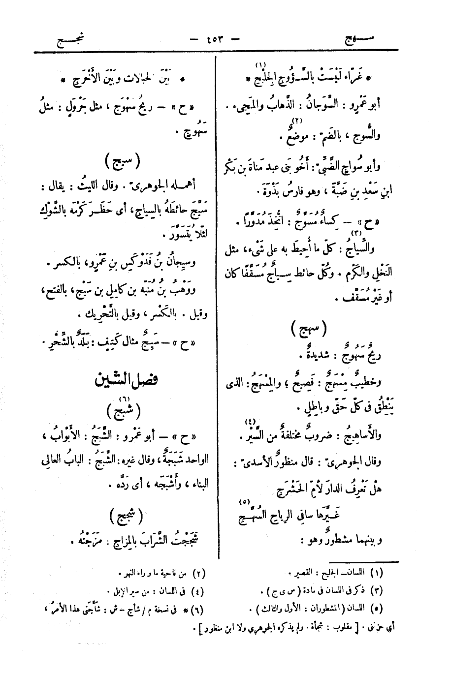 " ح " - ريحٌ سَهْوَج، مثل جَرْوَلٍ: مثلُ سَهُوجٍ.