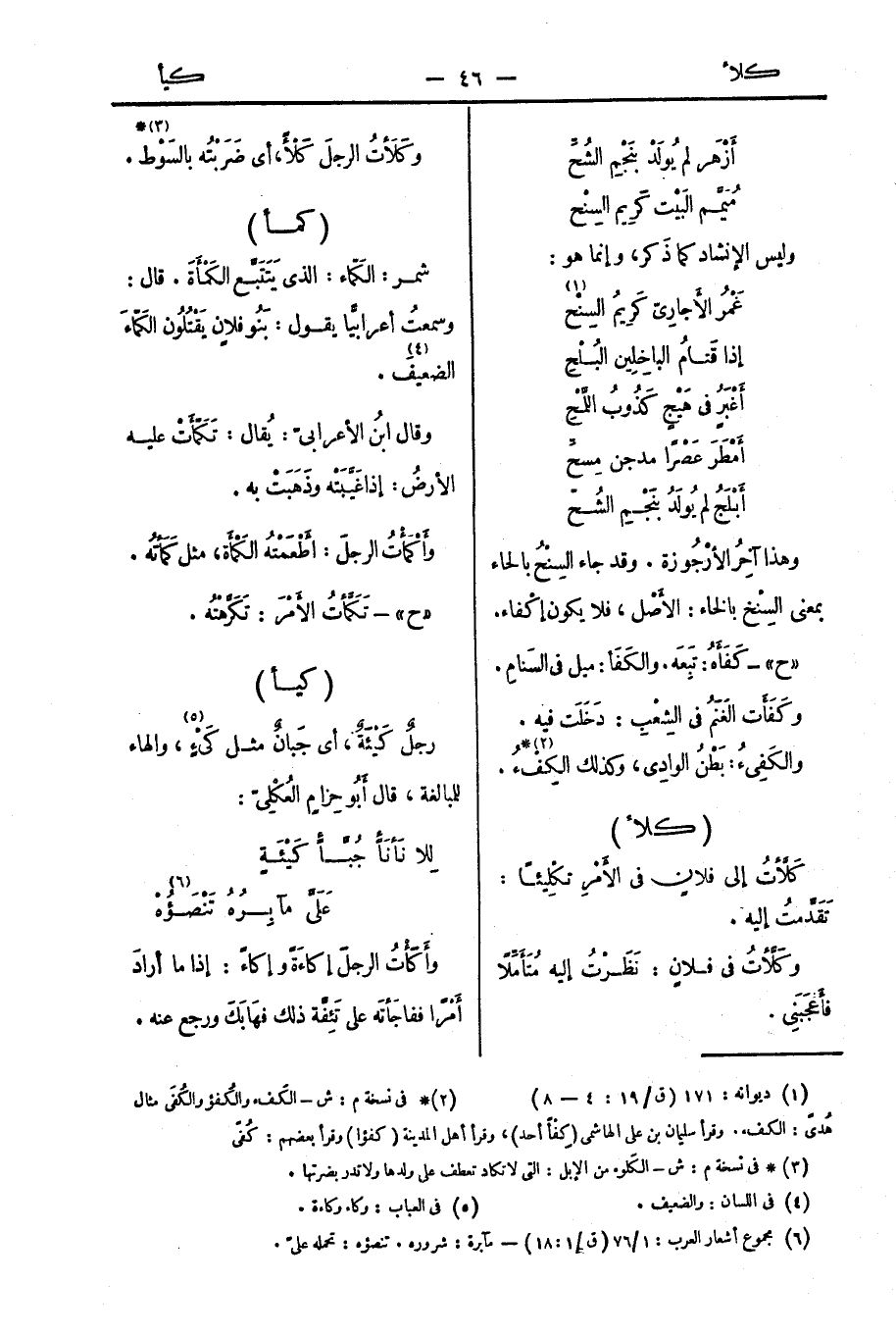 " ح " - كَفَأَهُ: تَبِعَه. والكَفَأ: ميل في السّنامِ.