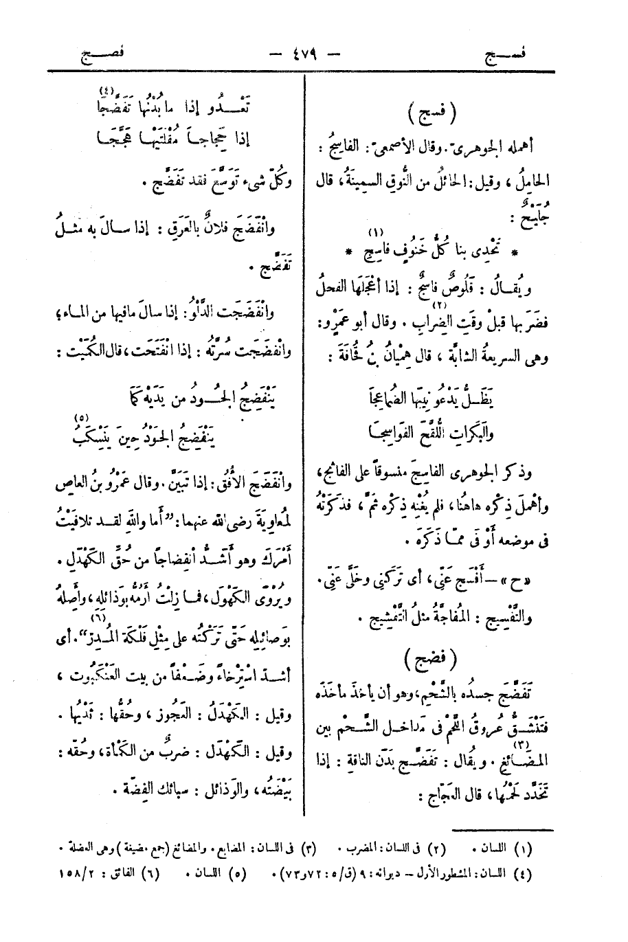 وذكر الجوهري الفاسِجَ منسوقًا على الفاثج، وأهْملَ ذِكْره هاهنا، فلم يُغْنِه ذِكْره ثَمَّ، فذَكَرْتُه في موضعه أَوْفَى ممّا ذَكَرَه.