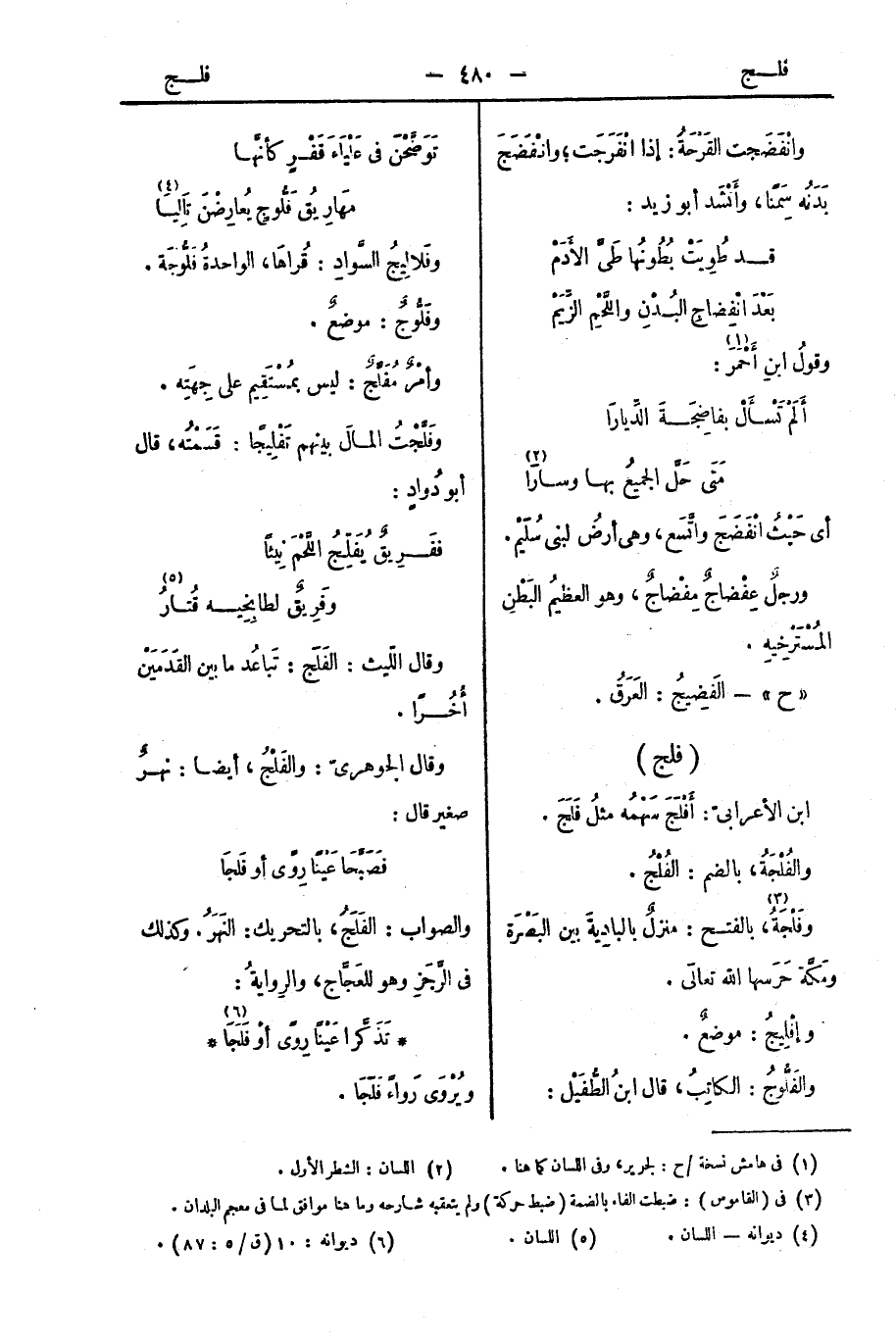 وفَلَّجْتُ المالَ بينهم تَفْلِيجًا: قَسَمْتُه، قال أبو دُوادٍ: