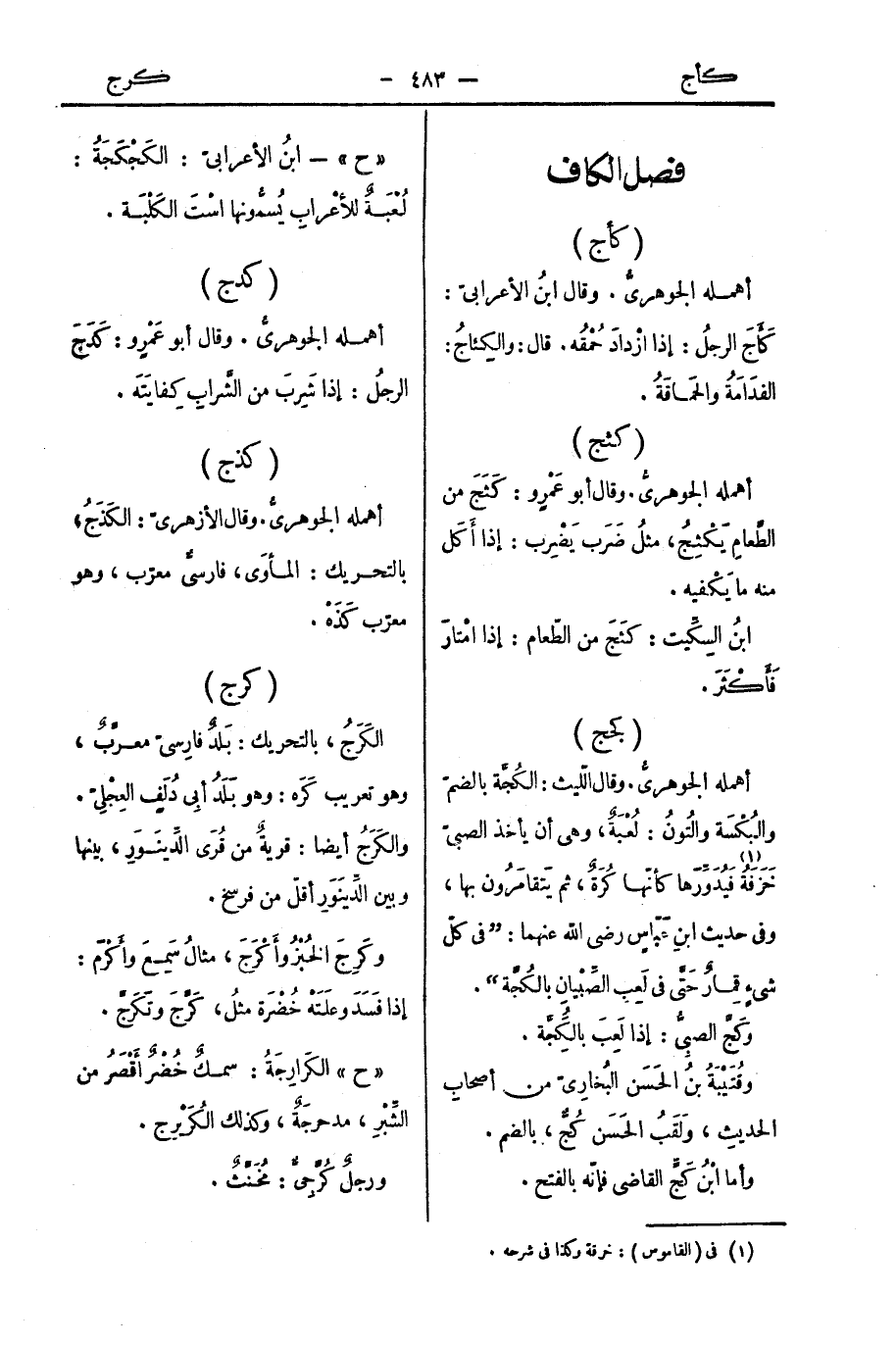 وأما ابْنُ كَجٍّ القاضي فإنّه بالفتح.