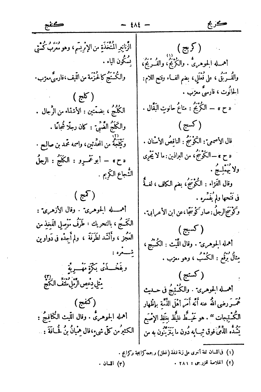 " ح " - أبو عَمْرِو: الكَلَجُ: الرجلُ الشُّجاع الكَرِيم.