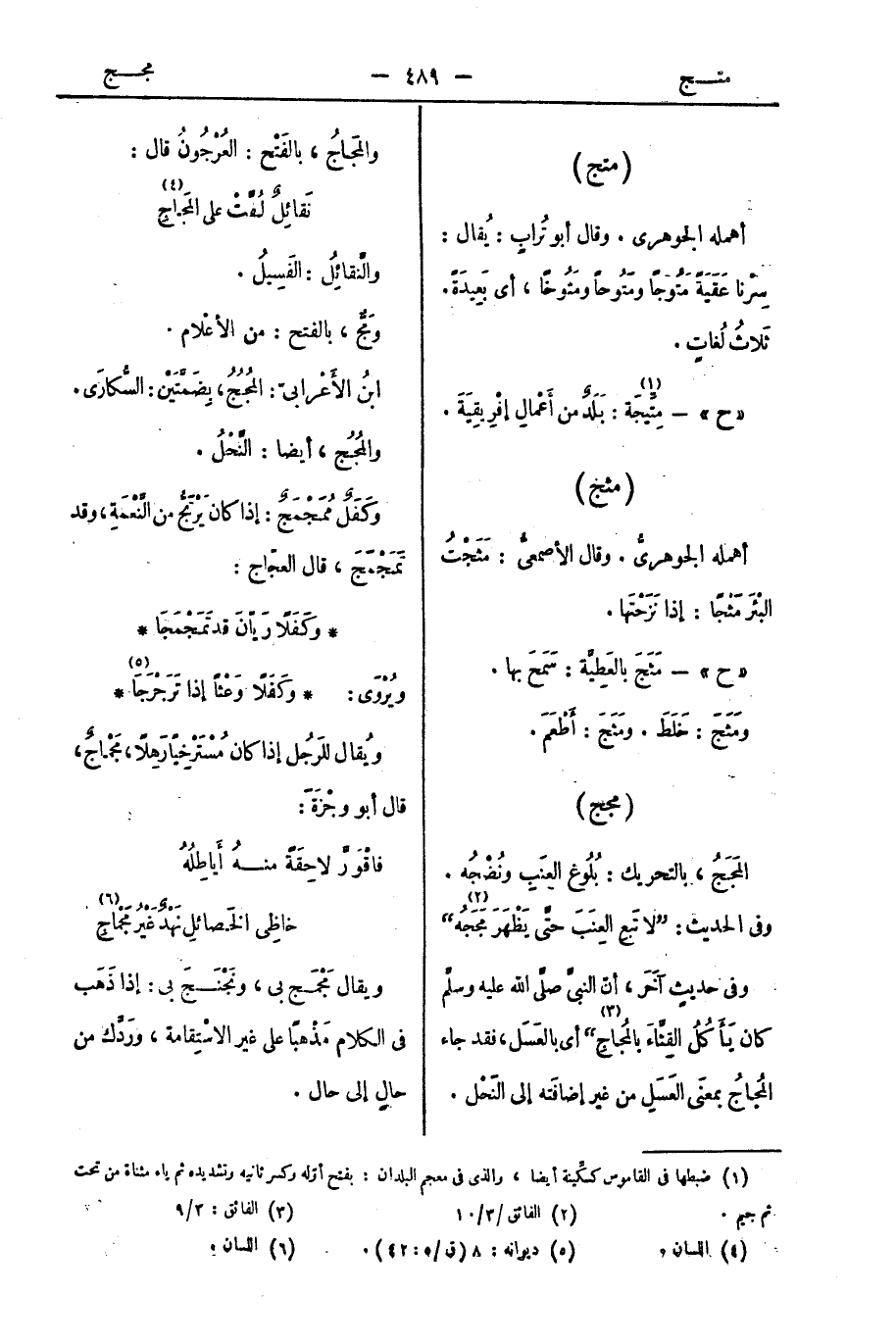 ويقال مَجْمَج بي، ونَجْنَجَ بي: إذا ذَهَب في الكلام مَذْهبًا على غير الاسْتِقامة، ورَدَّك من حالٍ إلى حال.