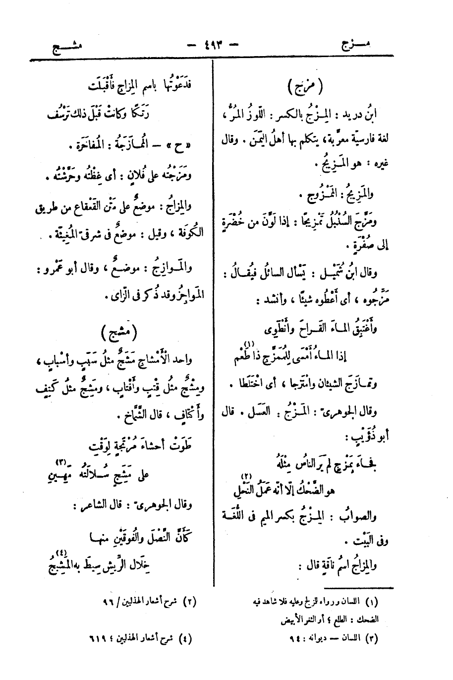 وقال الجوهريّ: المَزْجُ: العَسَل. قال أبو ذُؤَيْبٍ: