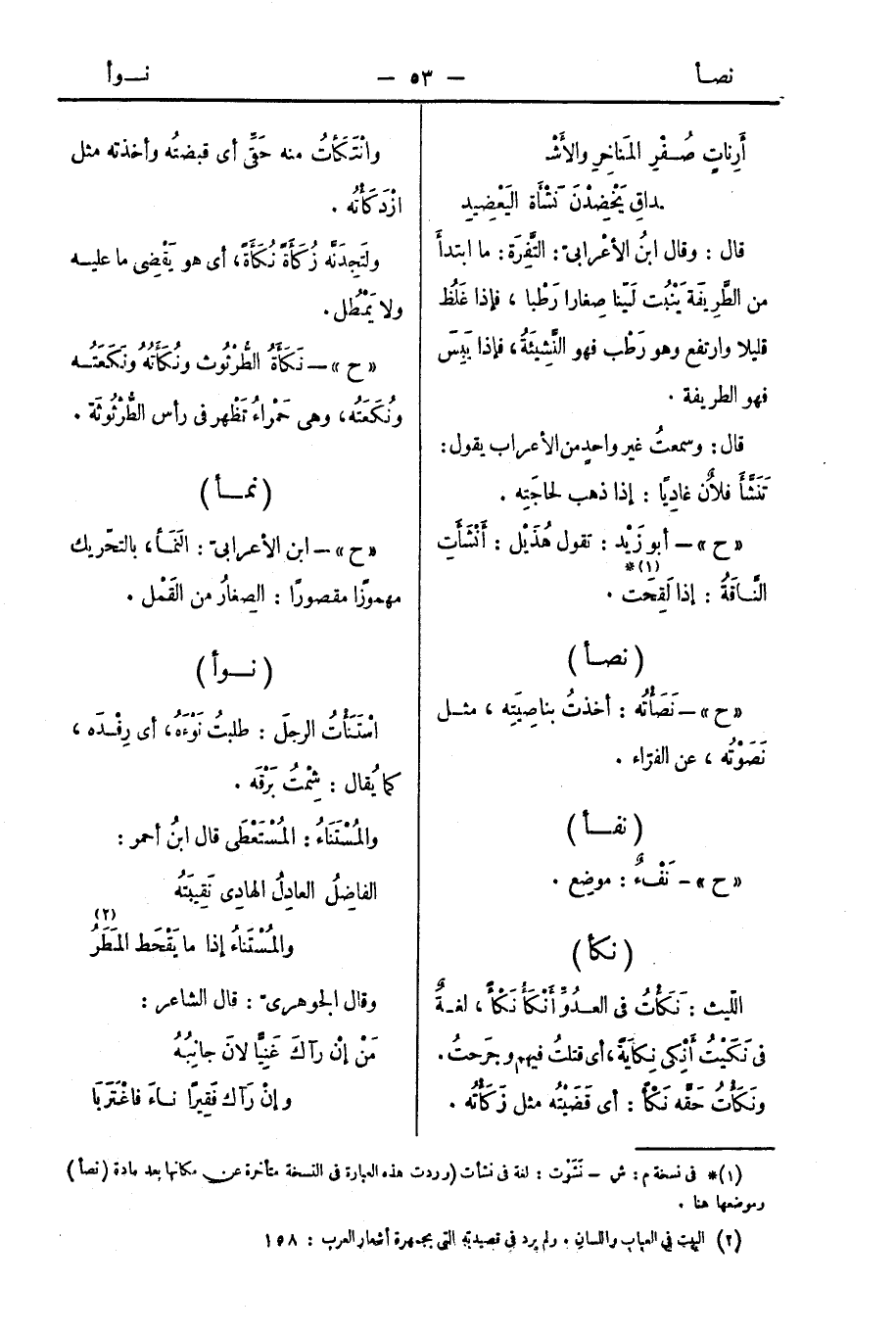 " ح " - نَكَأَةُ الطُّرْثُوث ونُكَأَتُهُ ونَكَعَتُه ونُكَعَتُه، وهي حَمْراءُ تَظْهر في رأس الطُّرْثُوثَة.